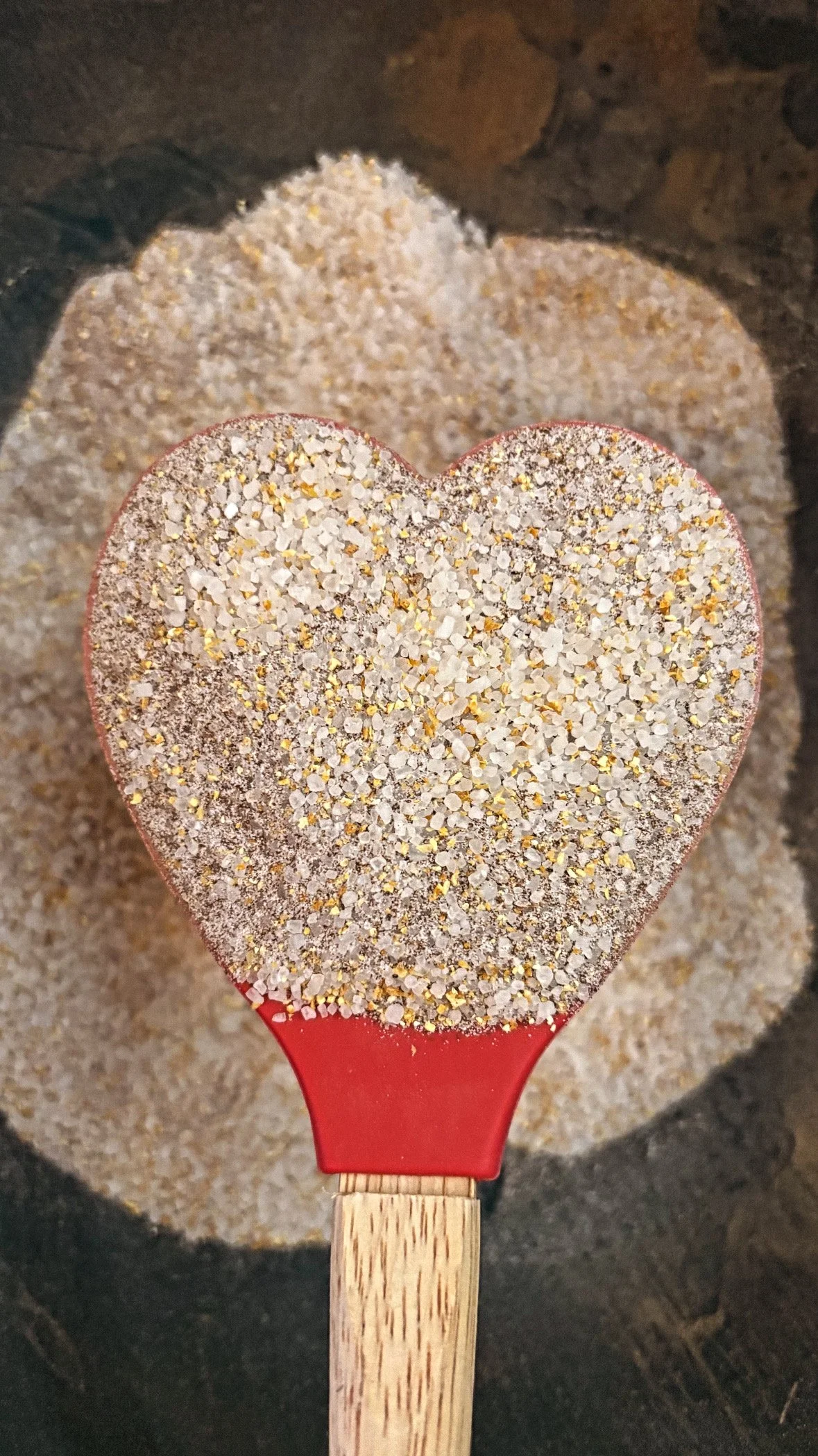 A luxury finishing touch. Flaky sea salt crystals (or raw cane sugar) infused with real vanilla bean specks and a pop of bright orange zest.